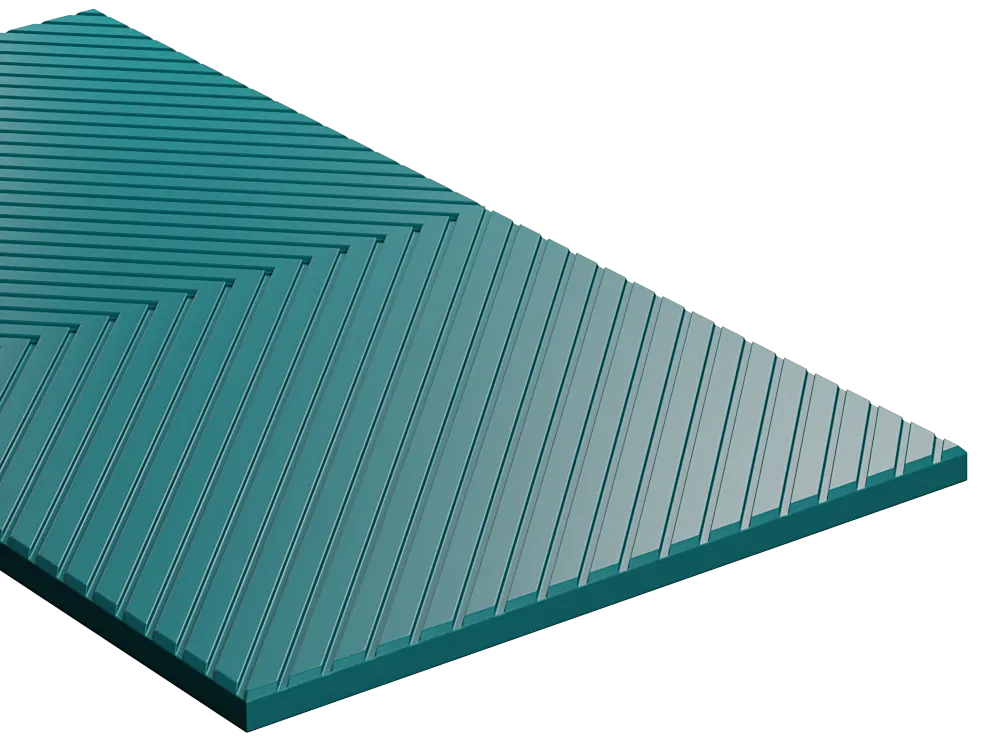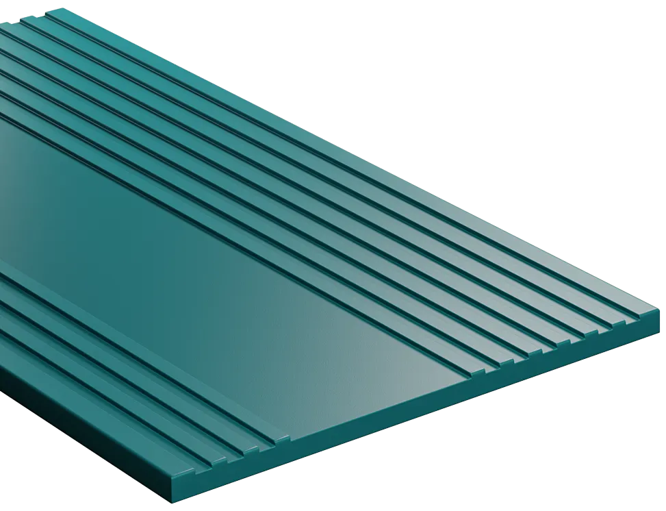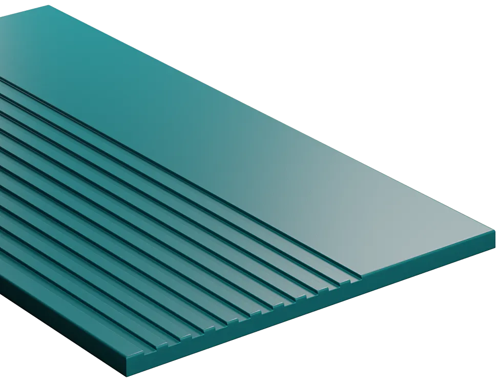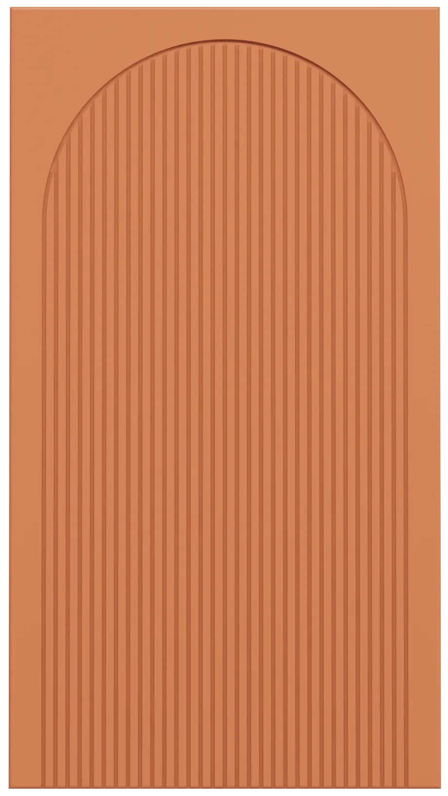 Можно использовать в небольшом количестве, как акцент, или полностью создать из него мебельный элемент. Благодаря рифленой поверхности может визуально вытягивать фасады в высоту, добавляя динамики и глубины в дизайн интерьера.