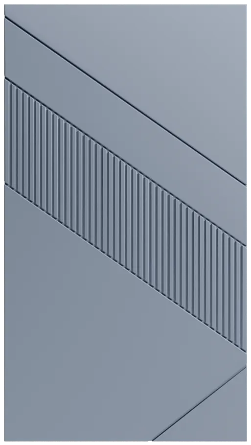 Сочетание гладкой поверхности и рифленых фрагментов обеспечивает фактурный контраст даже в монохромном исполнении. Изменяющийся угол наклона фрезеровки обеспечивает оригинальный вид мебели.