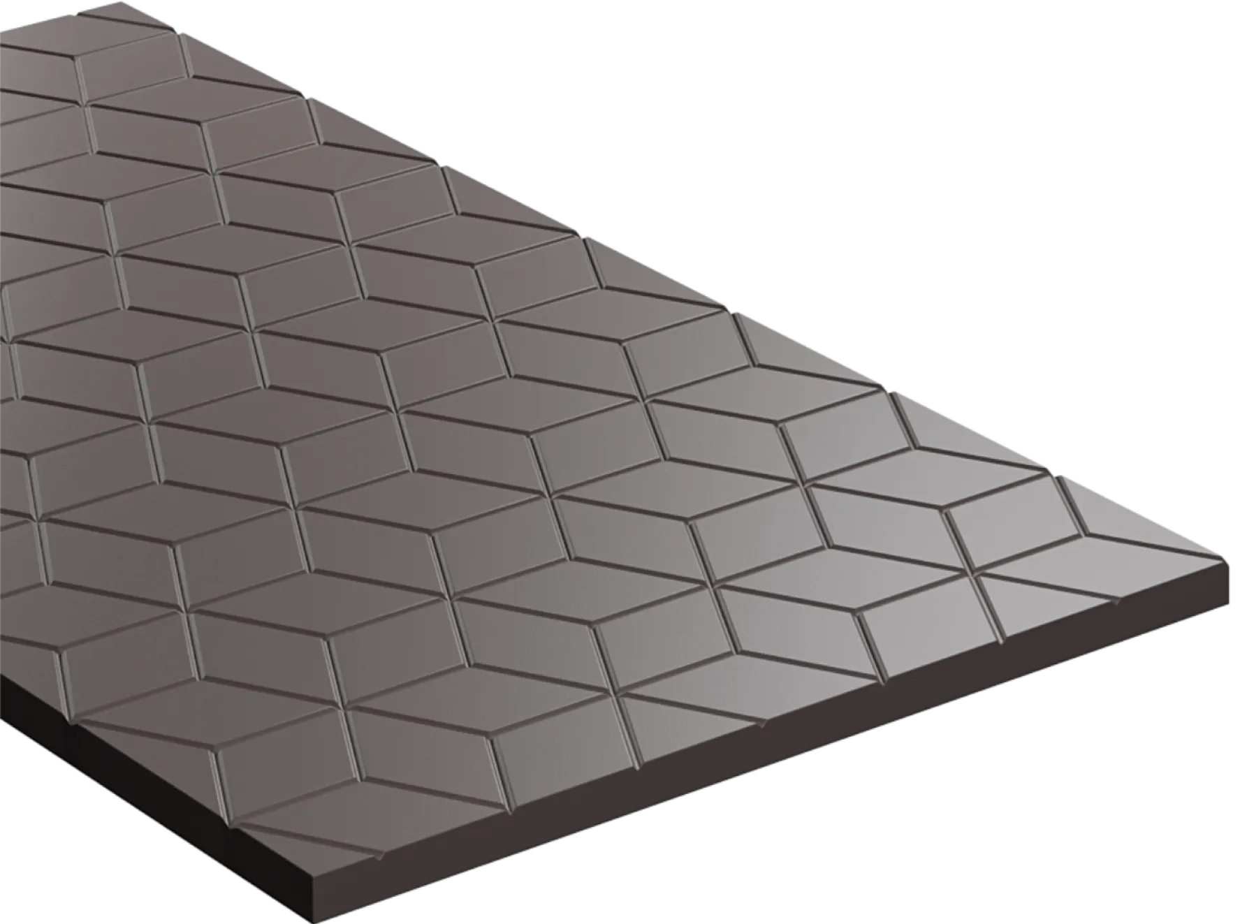 Вогнутые ромбы создают интересную игру света и подчеркивают эстетику любого цвета из палитры.