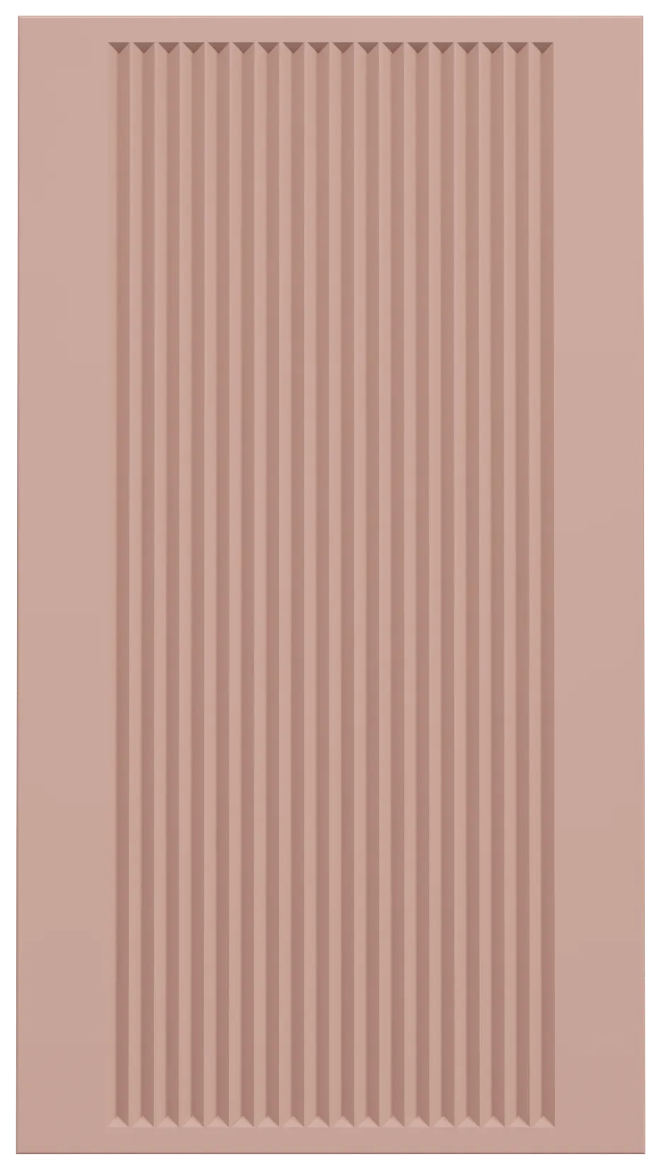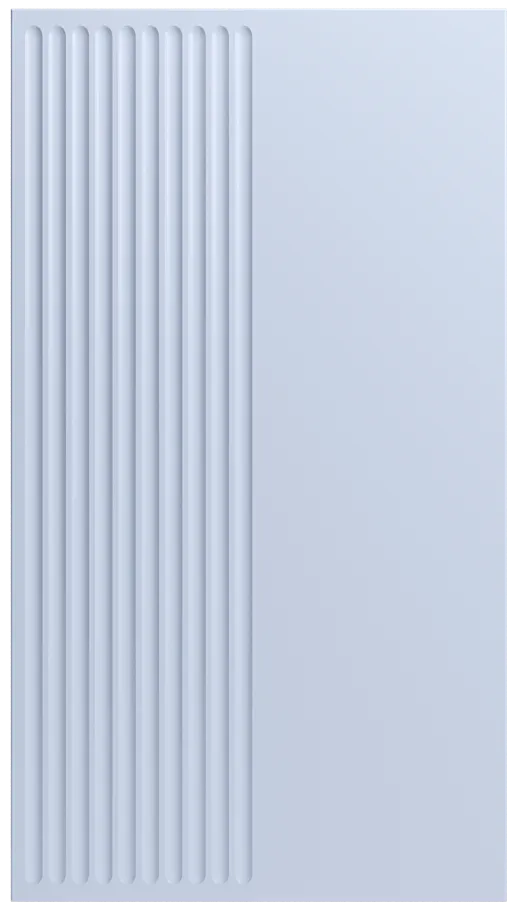 Гладкая рама и мелкое ребристое рифление создают фактурный контраст, который визуально вытягивает мебель в высоту. Фасады с таким дизайном выглядят особенно эффектно и стильно.