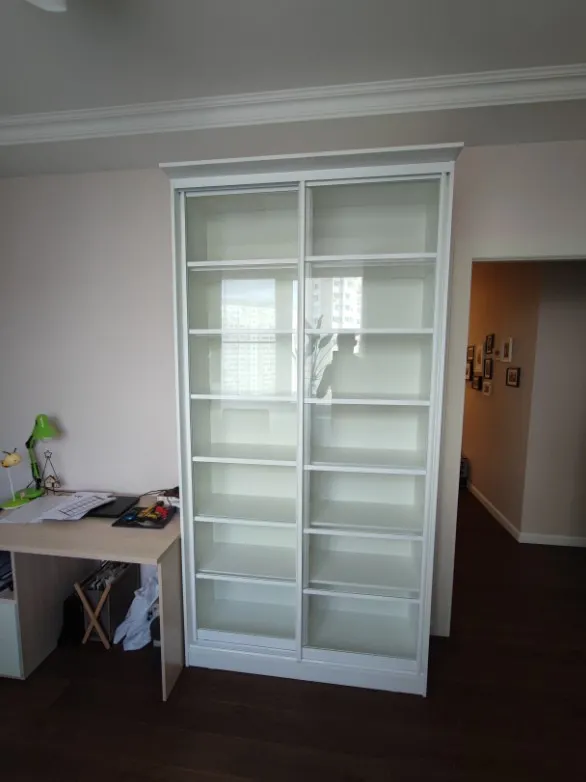 Книжный шкаф-купе Тринити-2-1 6 полок практично использует пространство даже в условиях нестандартной планировки.