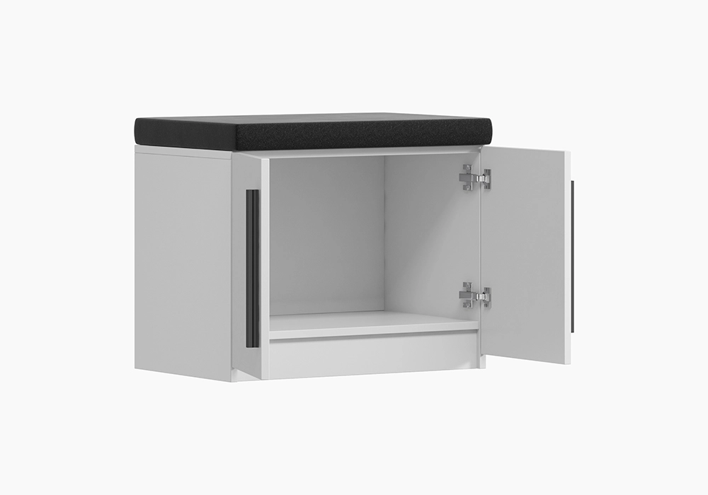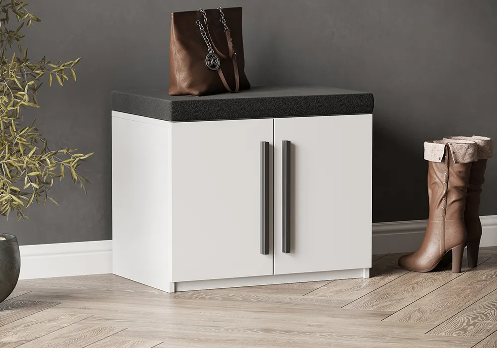У банкетки предусмотрено мягкое сидение и распашное отделение для обуви и аксессуаров.