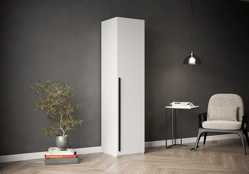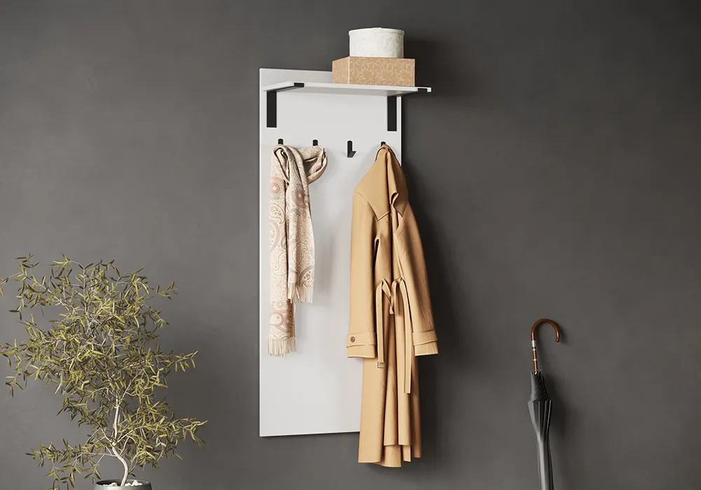 С помощью двухдверного шкафа и вешалки можно организовать порядок среди верхней одежды, головных уборов, платков, шарфов, сумок и зонтов.