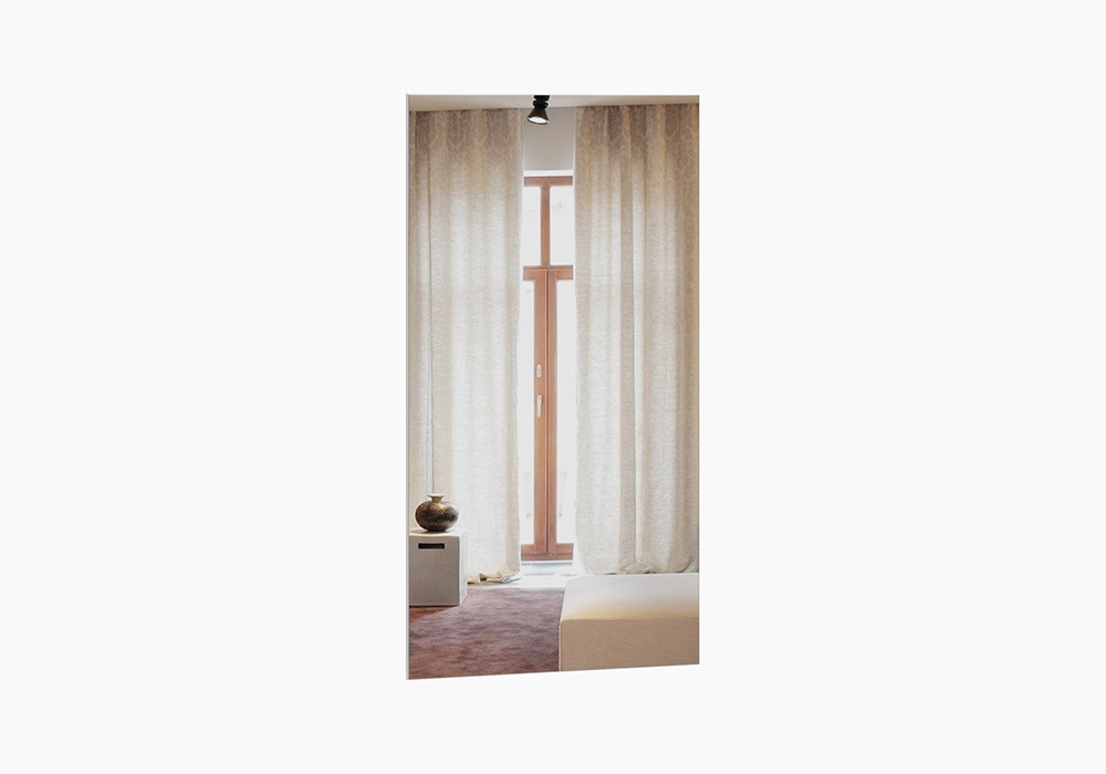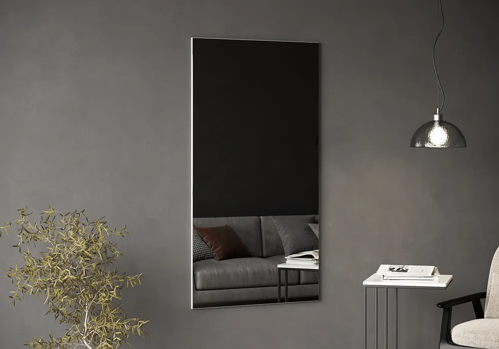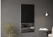 Прямоугольная форма навесного зеркала подчеркивает идеальную геометричность мебельного комплекта.