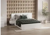 Кровать обеспечит комфортный отдых, наполняя спальню атмосферой уюта. Бельевые ящики, находящиеся под крепкими ламелями, надежно сохранят подушки, одеяла и постельное белье. Конструкция предусматривает наличие навесных тумб, встроенных в изголовье кровати, в которых удобно хранить зарядные устройства, уходовые средства и все то, к чему необходим быстрый доступ. Элегантные полукруглые ручки привносят изделию дизайнерский почерк.