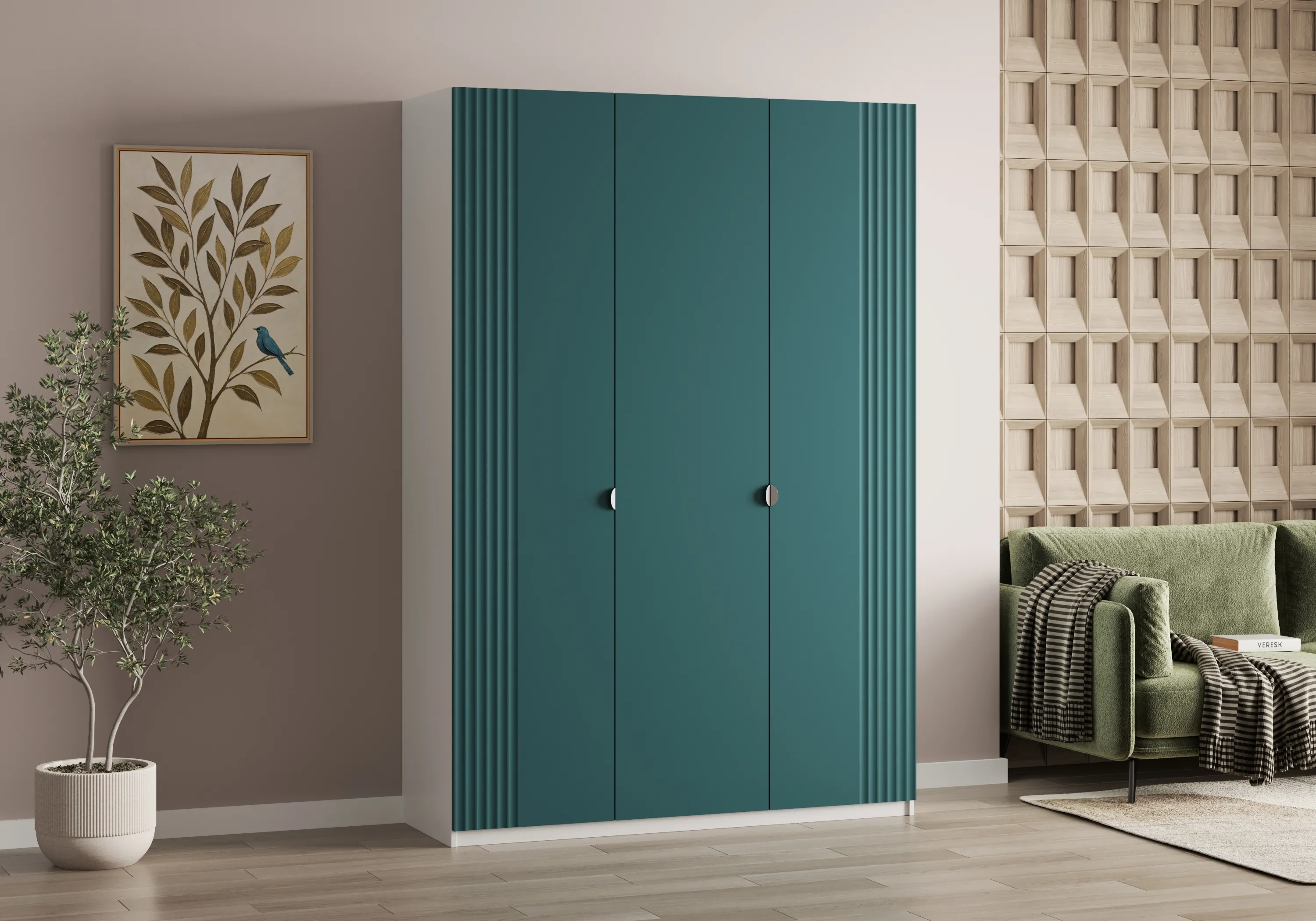 Распашной шкаф Санторини-3 комплектуется антресольной полкой, бельевым отделением и штангой (схема 3.2 ШР: 1/3Б+2/3П).