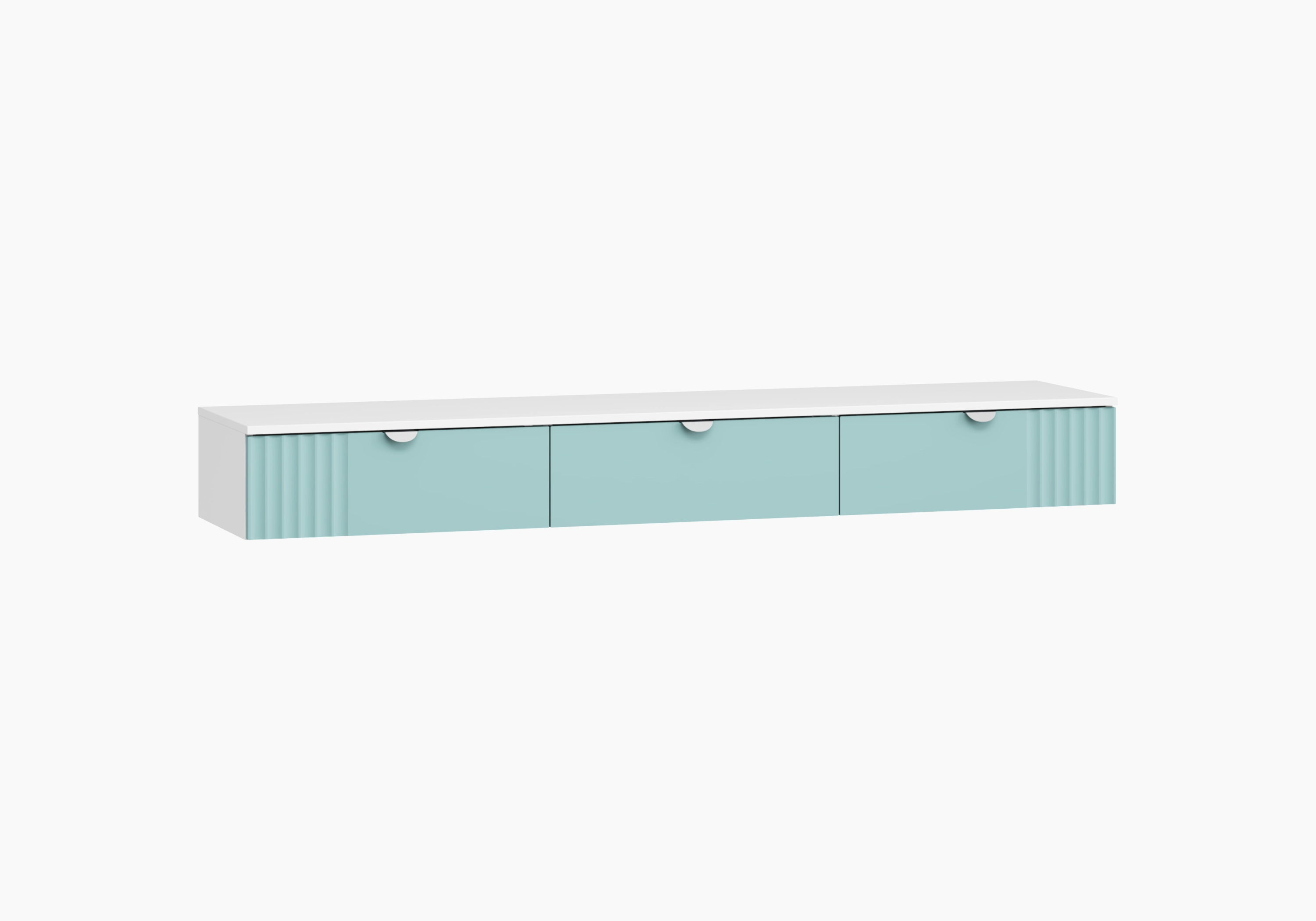 Четкие рифленые фасады задают ритм и визуально увеличивают пространство в высоту. Подвесную тумбу можно выполнить в любом оттенке, представленном в богатой цветовой палитре.