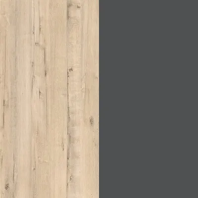 Прихожая сочетает в себе сразу два оттенка: древесный – Дуб Ирландский и темно-серый. Фасады выделяются за счет темной горизонтальной вставки на распашном шкафу и крышки на обувницы. Завершенный вид прихожей придают крючки, комплект для вешалки, профиль-ручки и опоры, исполненные в черном матовом цвете, которые хорошо сочетаются с общей цветовой гаммой изделия. Каждая деталь, представленная в данной модели, прекрасно гармонирует между собой.