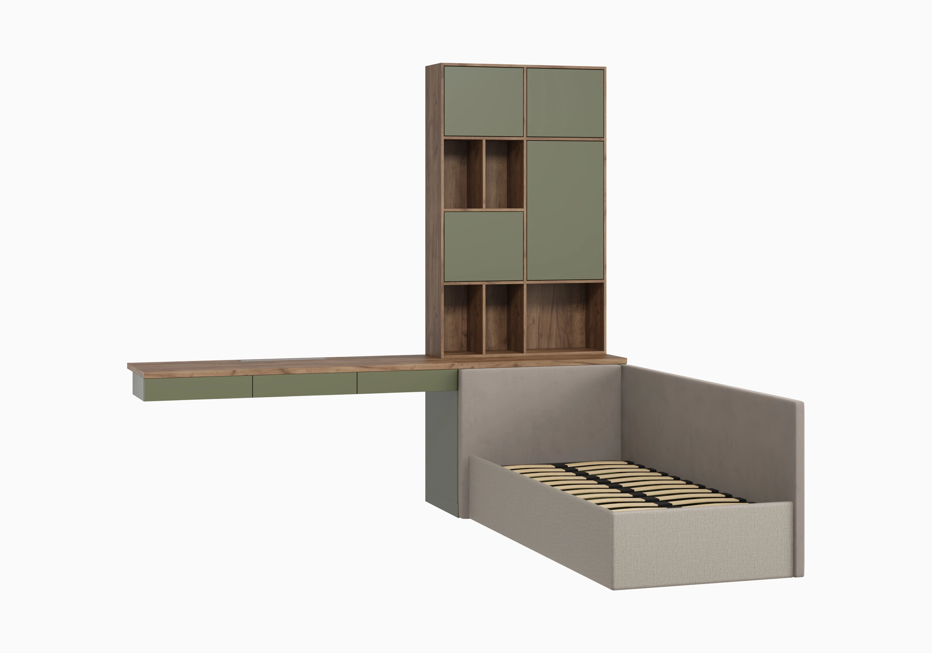 • Кровать с ортопедическим основанием и подъемным механизмом.