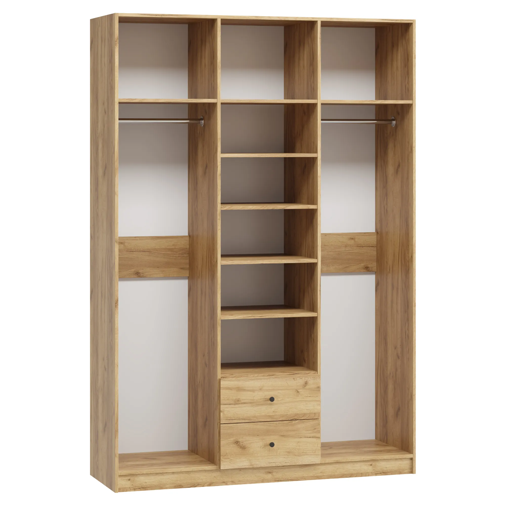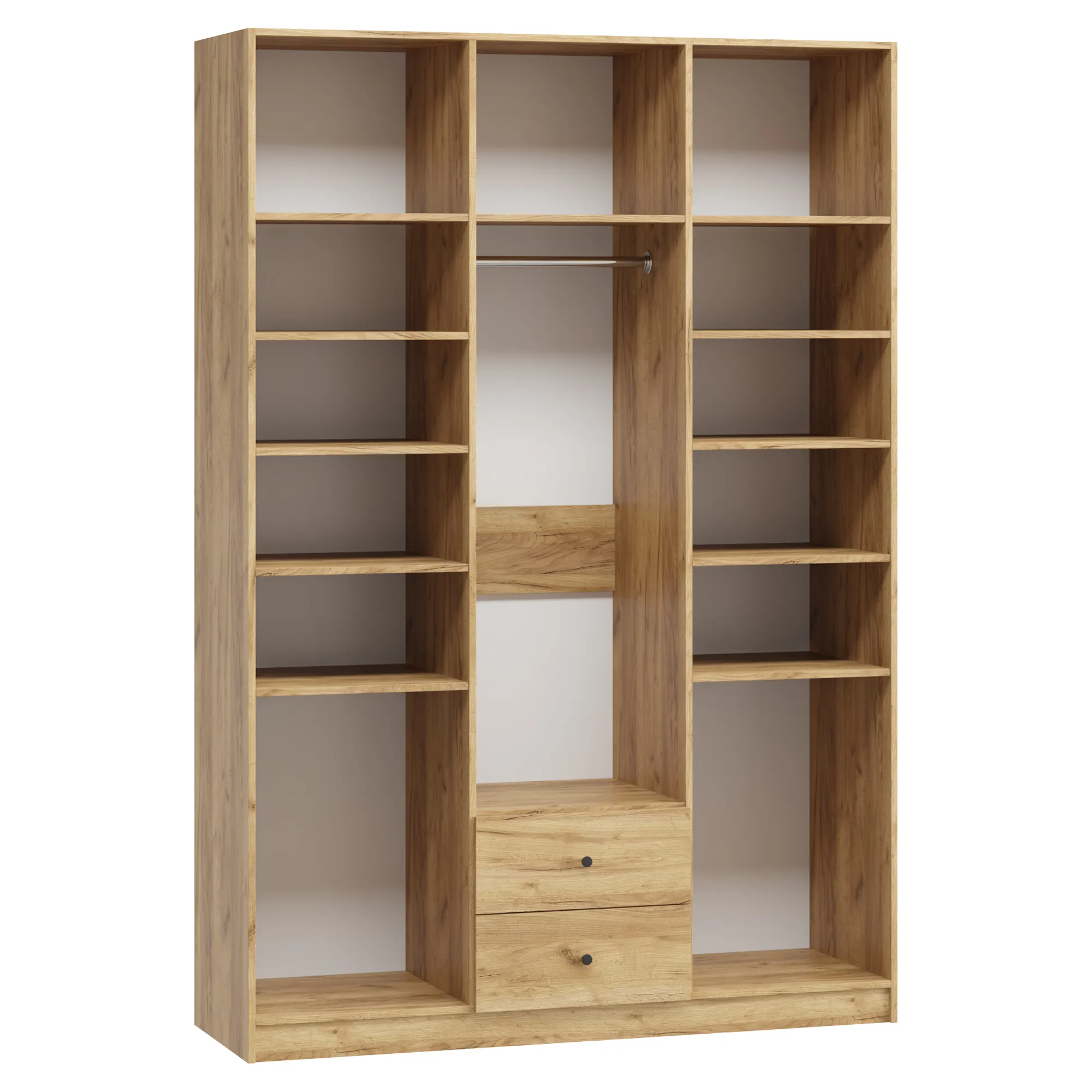 В отделение с полками над ящиками при высоте от 1900 мм до 2100 мм устанавливается 4 полки, при высоте от 2100 мм до 2500 мм устанавливается 5 полок.
