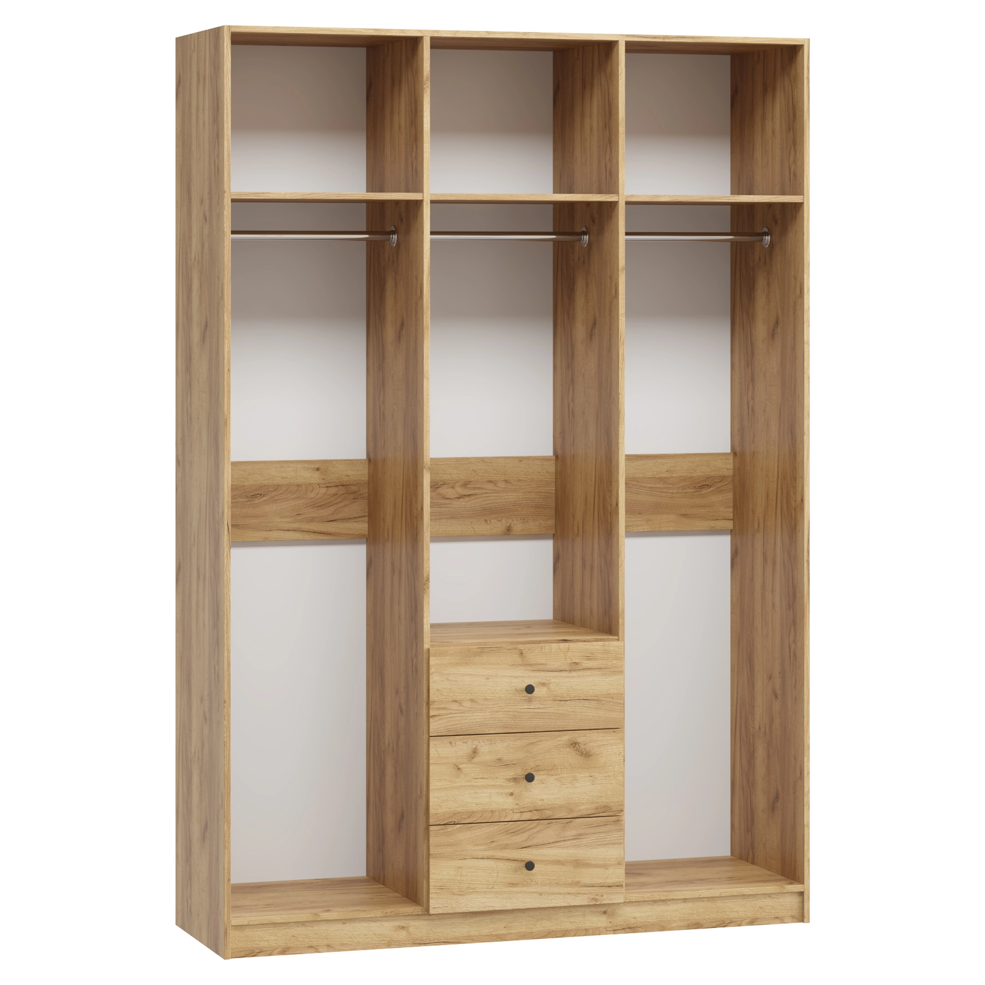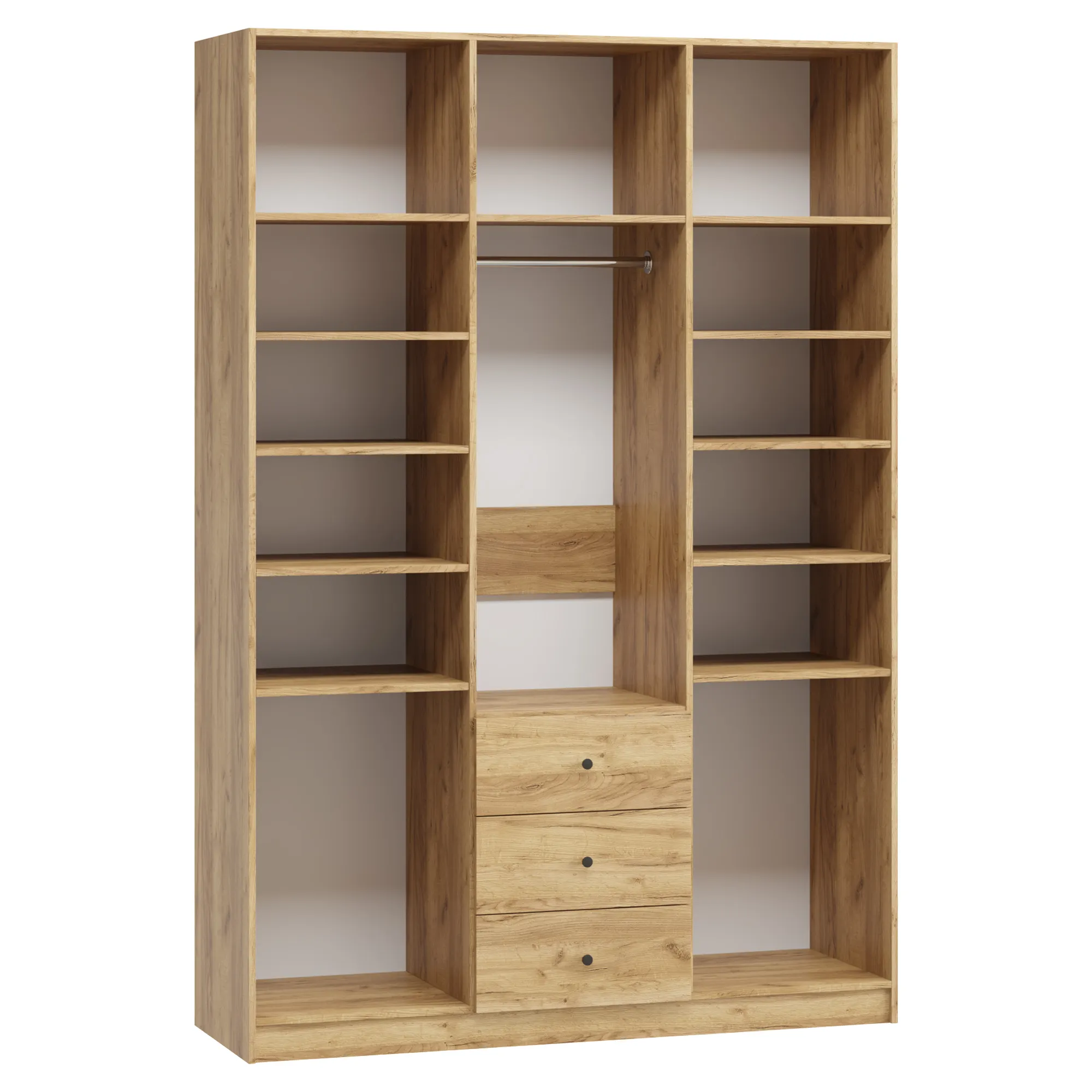 В отделение с полками над ящиками при высоте от 1900 мм до 2100 мм устанавливается 3 полки, при высоте от 2100 мм до 2300 мм устанавливается 4 полки, при высоте от 2300 мм до 2500 мм устанавливается 5 полок.
