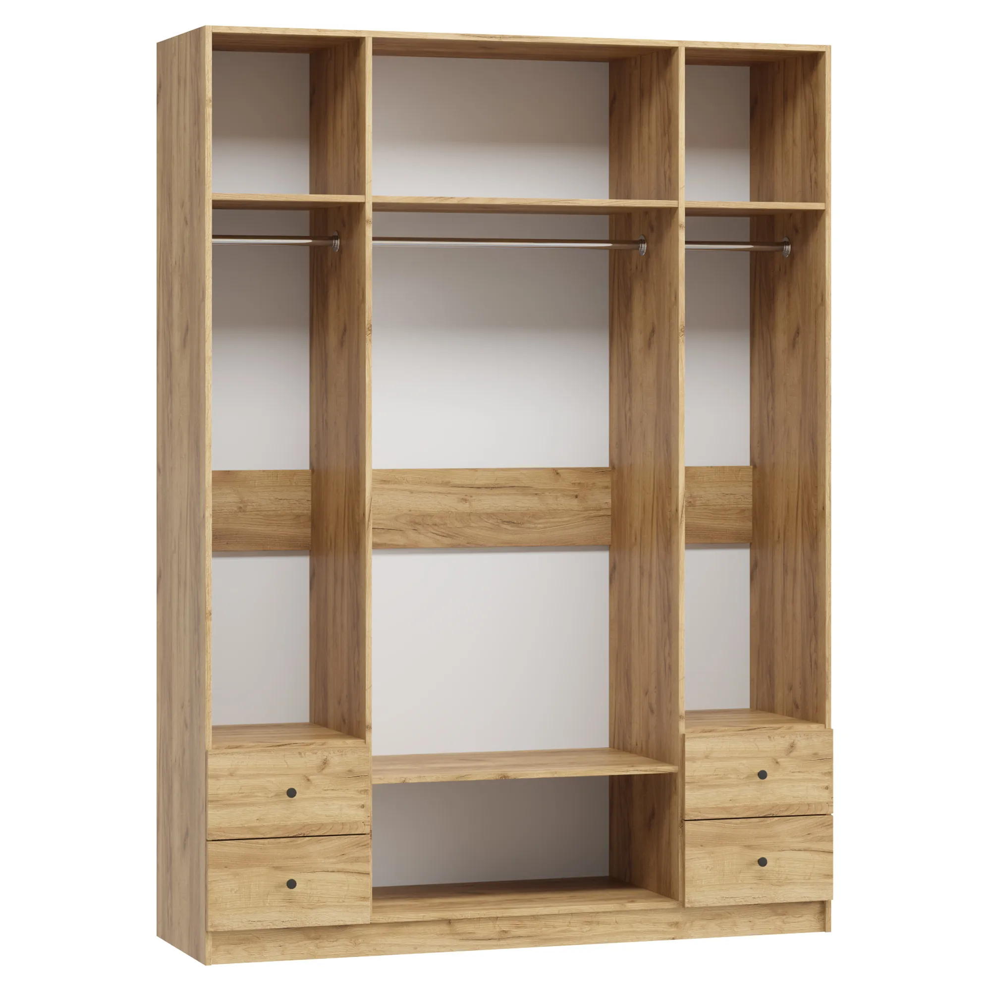 В отделение с полками над ящиками при высоте от 1900 мм до 2100 мм устанавливается 4 полки, при высоте от 2100 мм до 2500 мм устанавливается 5 полок.