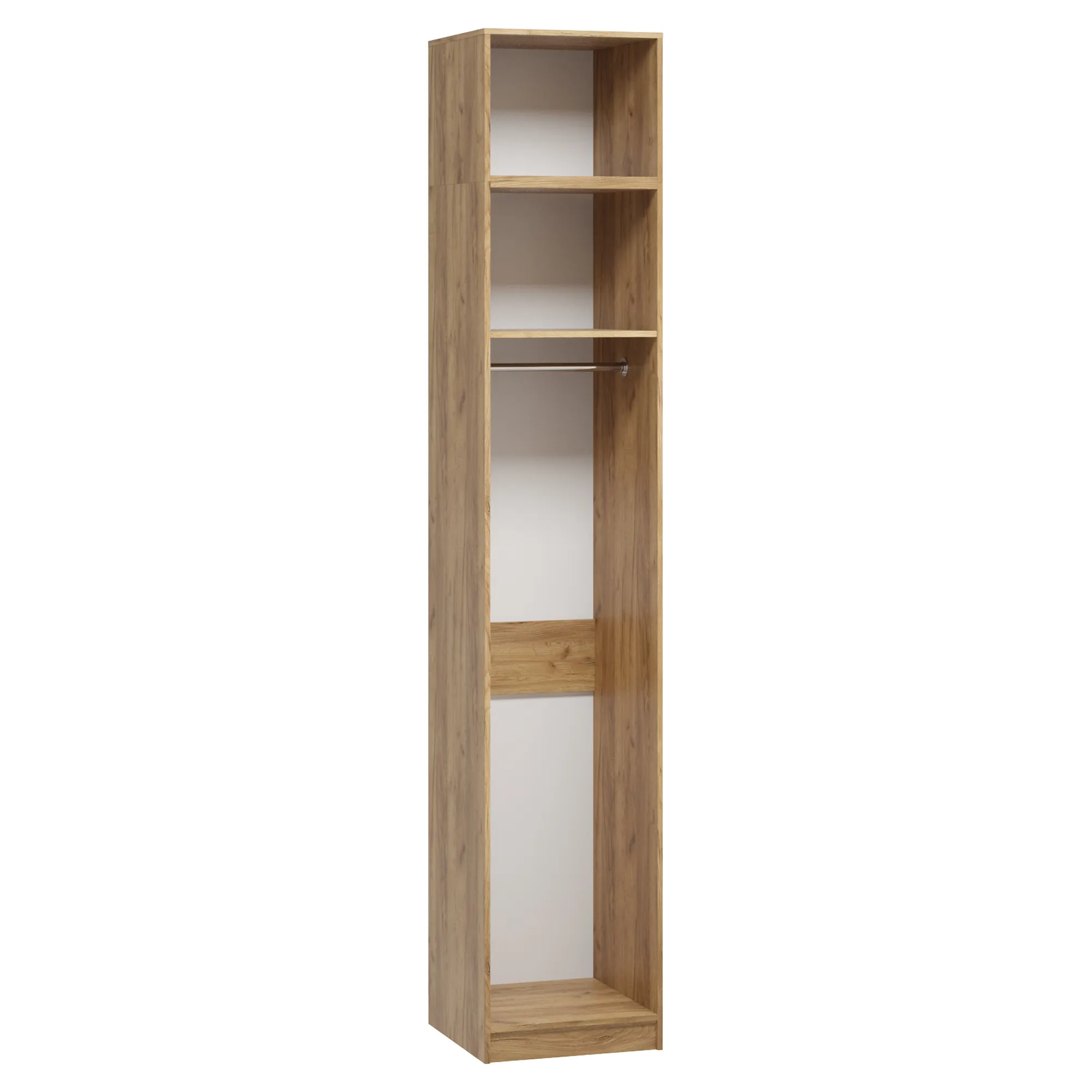 Интегрированная ручка добавляет удобства при контакте с дверью и делает однодверный шкаф еще более безопасным. Кроме того, можно добавить выдвижные кронштейны и ящики, штанги, светильники и сетчатые полки под обувь. Встроенная антресоль расширяет возможности хранения, позволяя более рационально использовать пространство. Закрытый цоколь является полезным элементом дизайна, который облегчает уборку и придает устойчивость конструкции.