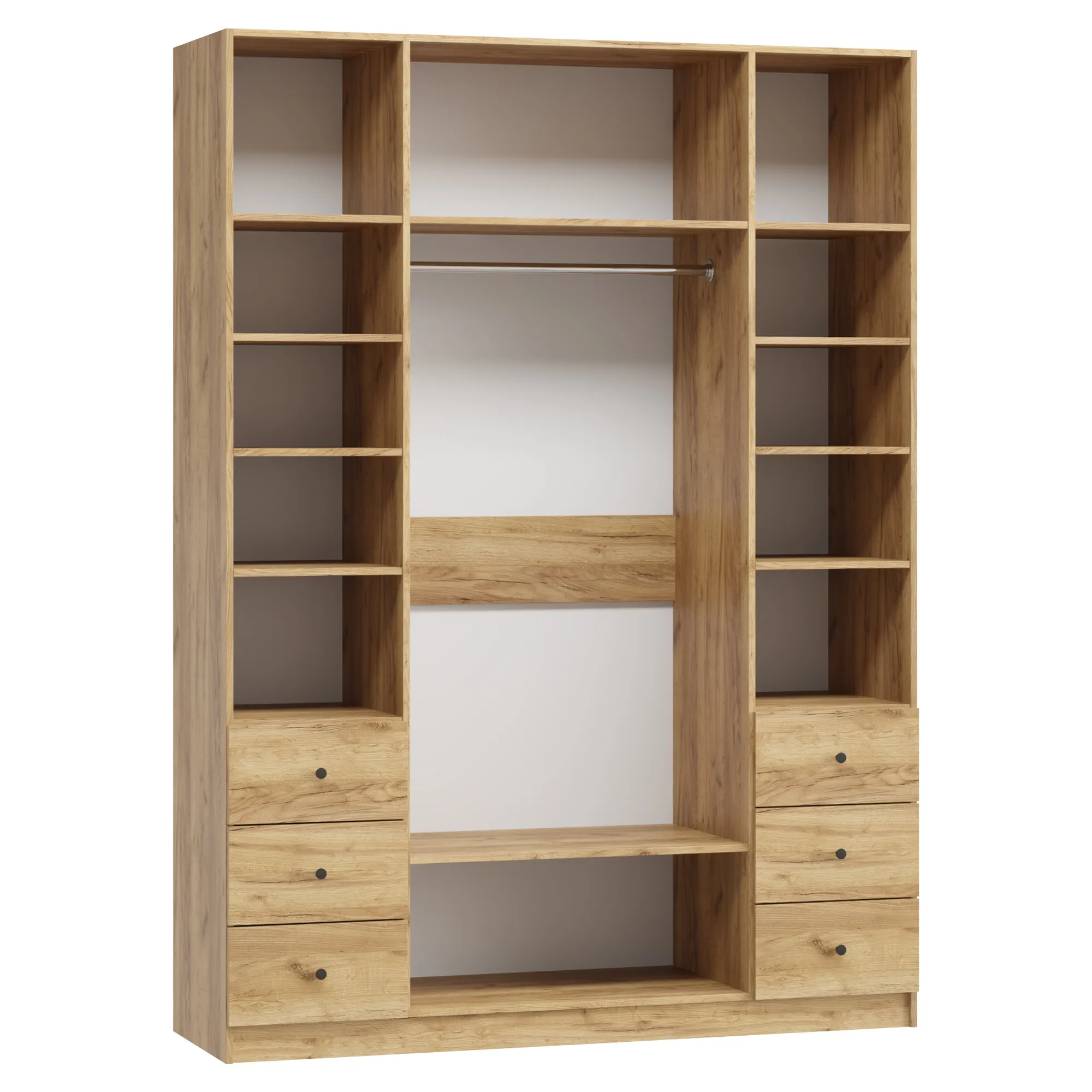 Распашной шкаф Ричмонд‑4.3 — это вместительный четырехдверный шкаф с шестью выдвижными ящиками. Мебель, которая решит ворох повседневных задач по хранению одежды и вещей. Прекрасно впишется в спальную комнату, гостиную или прихожую благодаря универсальному дизайну с «изюминкой».