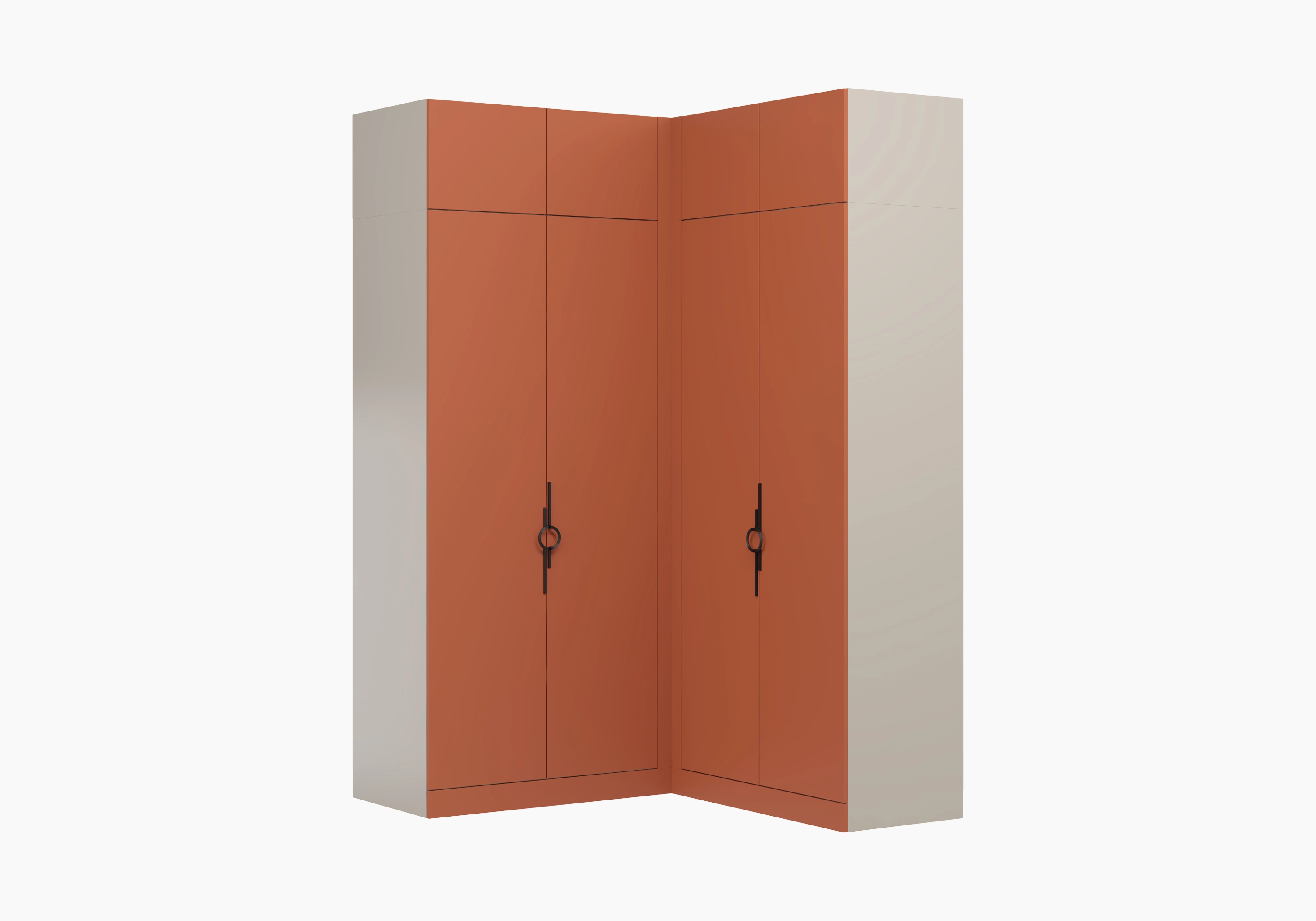Наполнение в угловом отделении Основного шкафа не изменяется. Просвет верхней полки - 376 мм; просвет нижней полки - 300 мм.