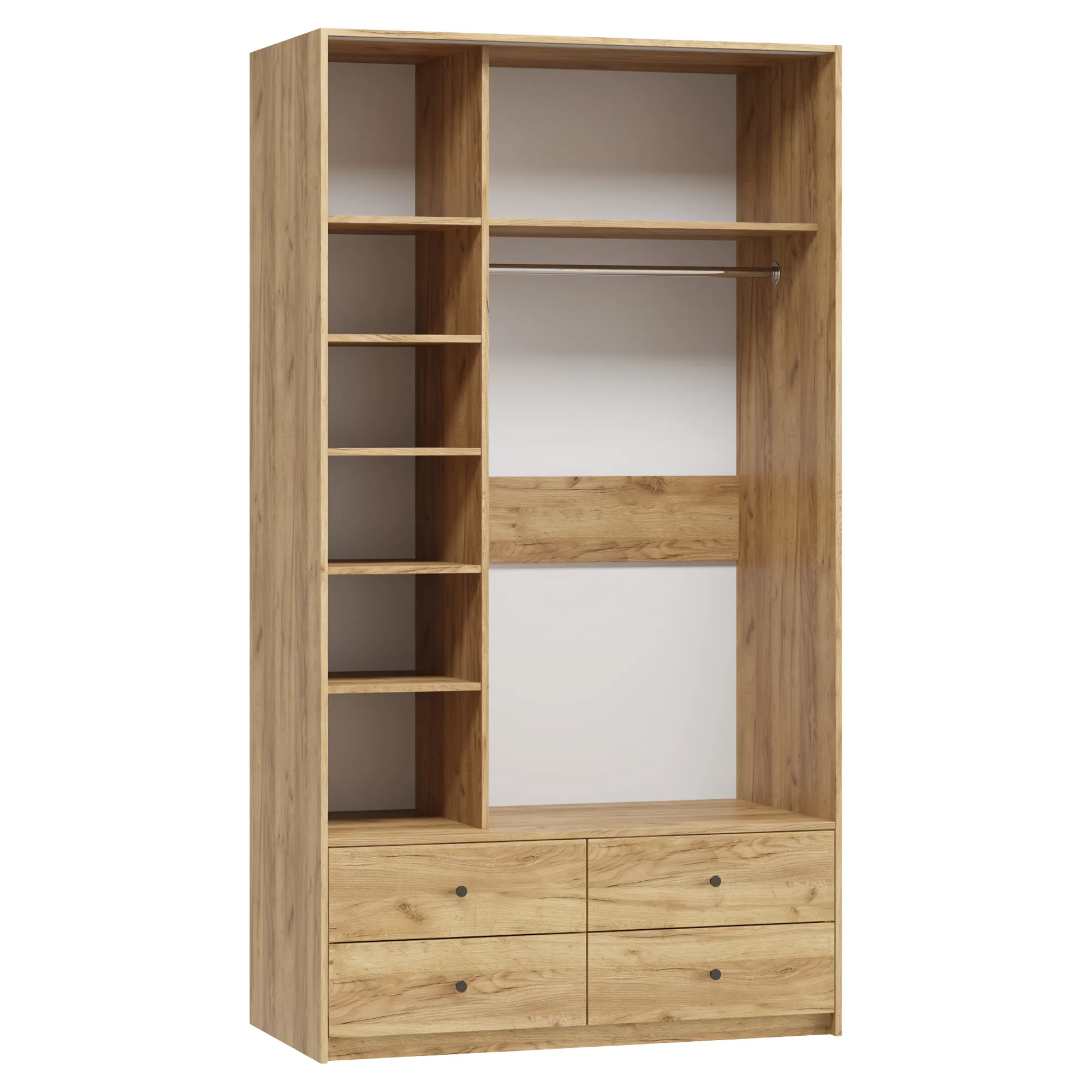 Сборный корпус двухдверного шкафа состоит из МДФ в пленке soft-touch и ЛДСП класса Е1. Надежная фурнитура обеспечивает изделие износостойкостью и практичностью.