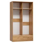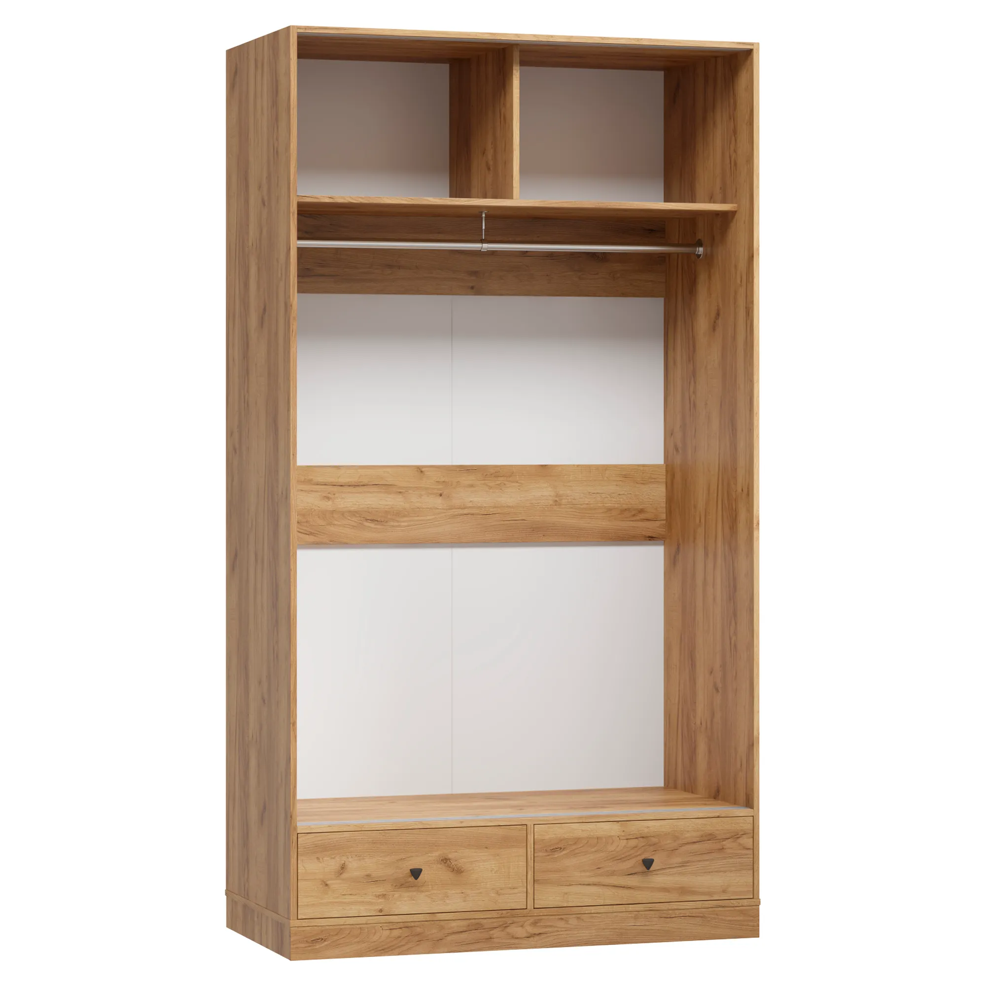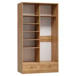 Шариковые направляющие способствуют плавному и беззвучному закрыванию. В платяном отделении встроена крепкая штанга для рубашек, костюмов, шуб и курток. Для сумок, коробок и постельных принадлежностей предусмотрены полки. Опция «выбрать вырез под плинтус» позволяет придвинуть шкаф вплотную к стене.
