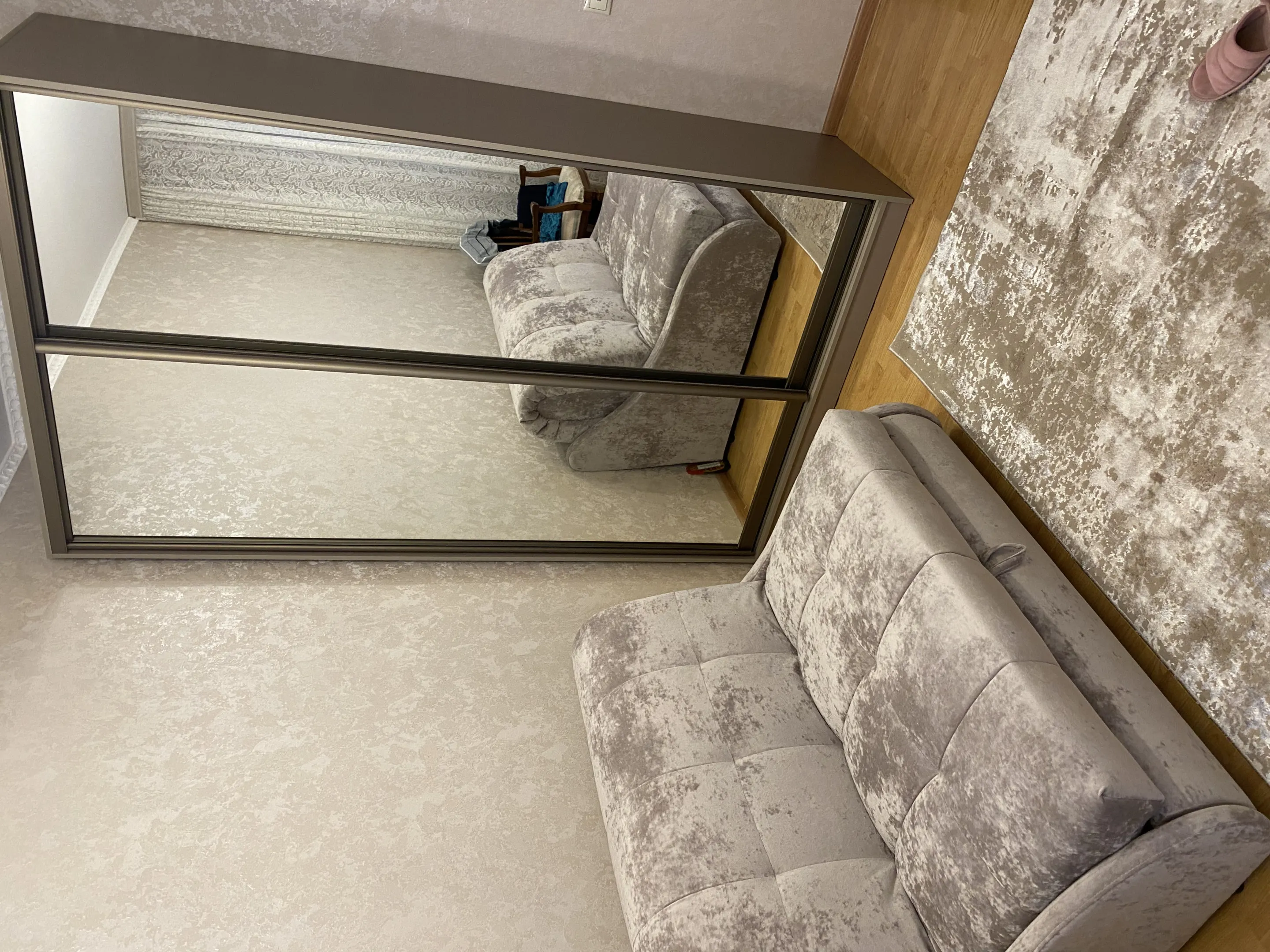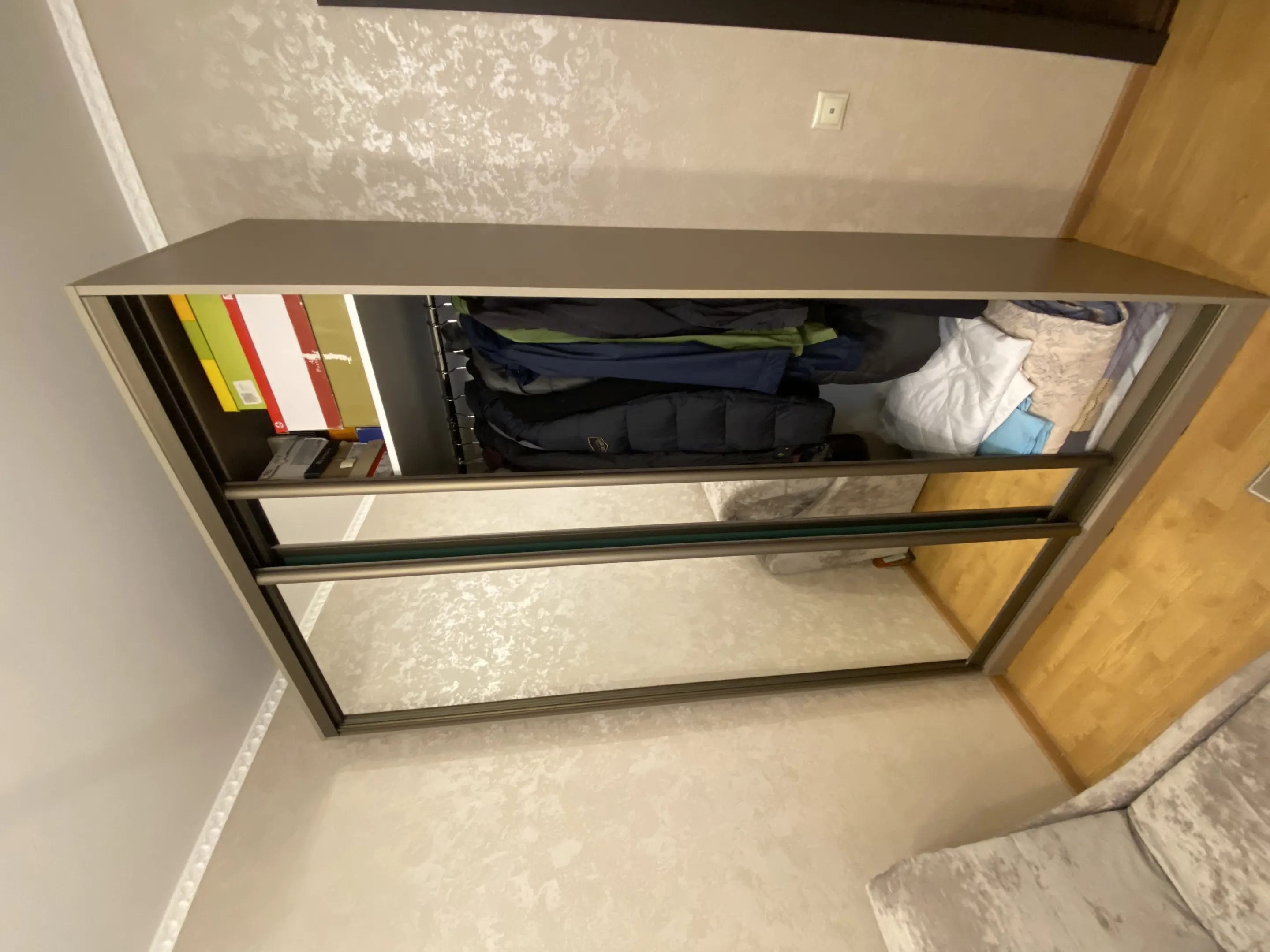 Искали по приемлемой цене и нашли этот шкаф. Нам сделали только со штангой как мы и хотели, но можно еще и полками дополнить. Зеркала были отлично упакованы, система раздвижных дверей работает хорошо, профиль-ручка удобная, чтобы не заляпать зеркала. Хотим еще такой на дачу заказать, но с другим наполнением внутри.