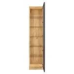 Фасад декорирован цветным стеклом в приглушенном черном оттенке. По периметру его дополняют узкие рамки Al LINEA. Внутри двухдверной витрины предусмотрены два отделения с полками по всей высоте изделия. Бесшумное открывание и закрывание двери обеспечивают специальные петли HARMONY с доводчиком.